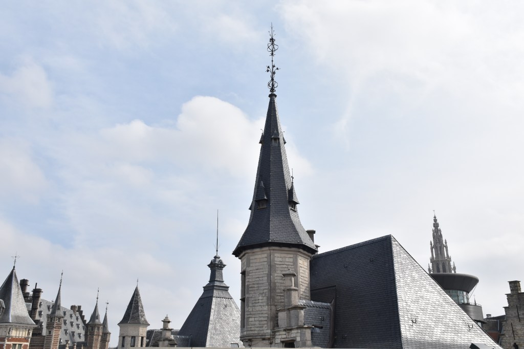 Doch de lokroep van onze Koekenstad gehuld in de sfeer van een autoluwe zondag lokte ons naar de afstapplaats aan het Steen, om daar als uitgelaten toeristen het Steen met zijn nieuwe aanbouw te bezoeken van onder tot boven. Er was weliswaar niet genoeg geld in de stadskas om een lift tot de bovenste etage te bekostigen. Dus met de trap naar de bovenste verdieping dan maar. Het zicht is daar wel mooi en vooral bekijk je de oude en nieuwe gebouwen uit een ander perspectief.