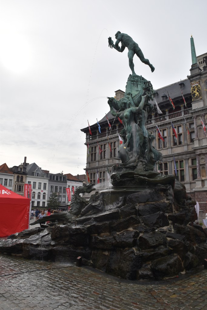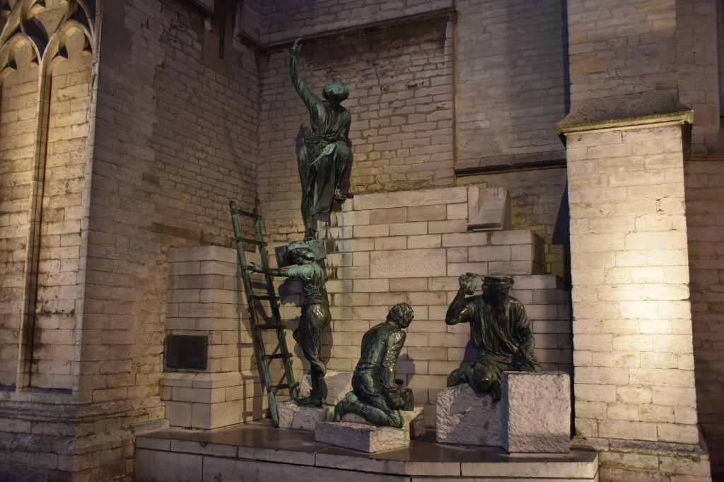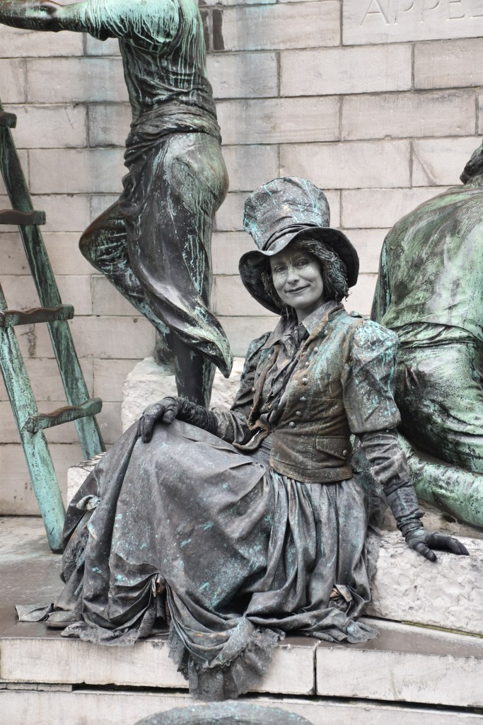 Verder langs onze ‘uitgepakte’ Kathedraal in al zijn glorie….met één extra bronzen beeld onderaan de voet op de sokkel. Heel mooi maar niet echt. Mijn broertje den oude snoeperd al direct handkusjes en hartjes naar mekaar gooien! Hoe oud ze werkelijk was weet ik niet maar ze had wel haar best gedaan om er heel Rubensiaans uit te zien (in smalle versie weliswaar…).