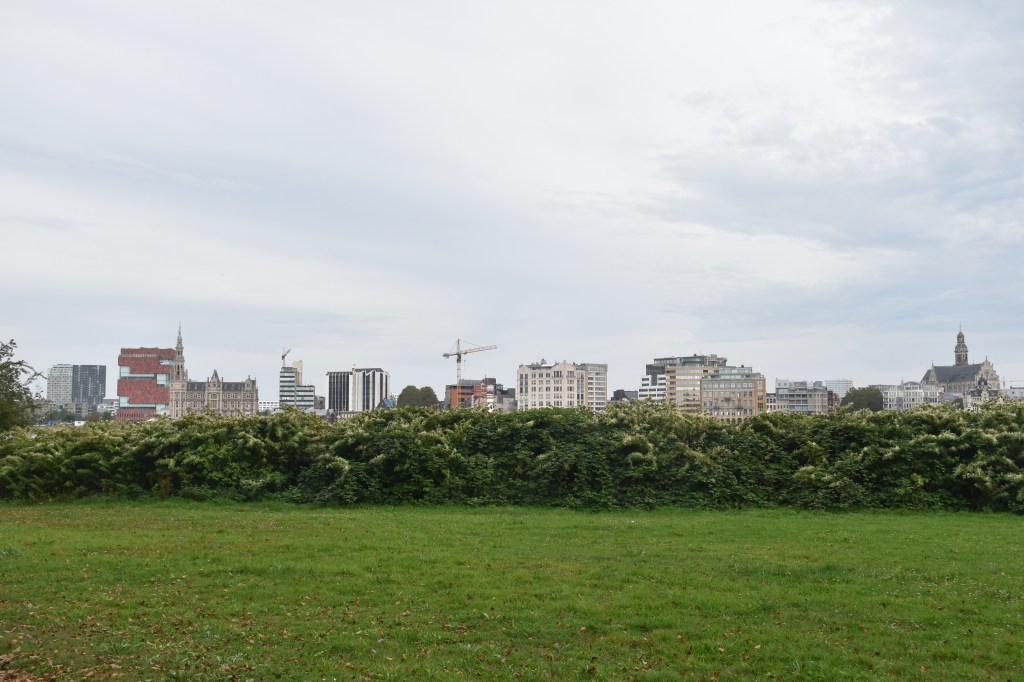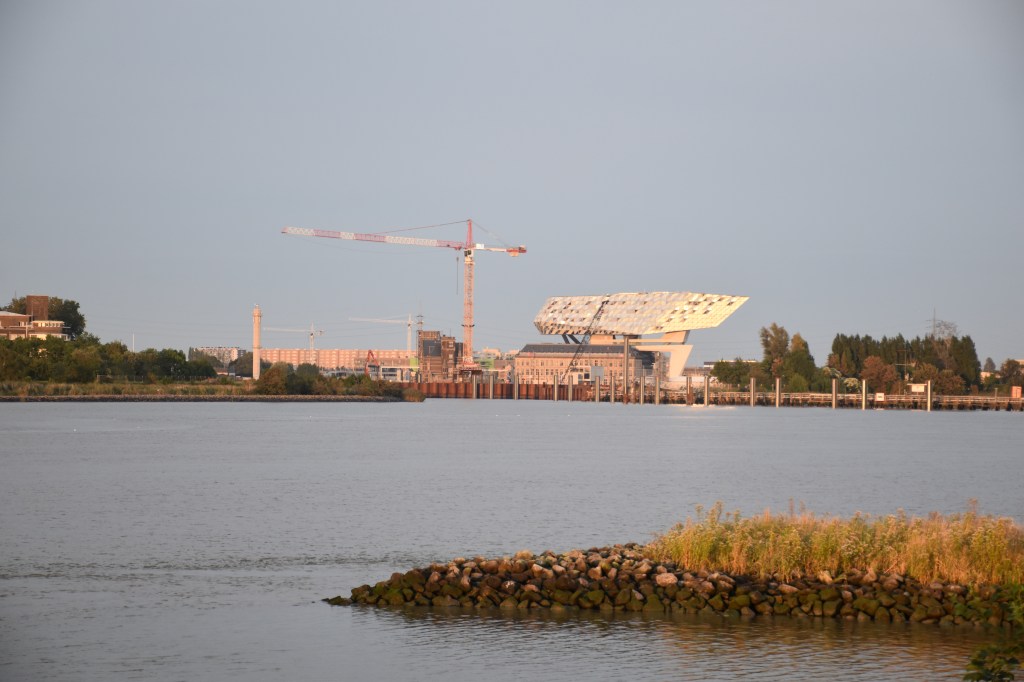 Vermoeid ter bestemming aan gekomen aan het, door één van de vele onderweg tegengekomen maten, vrienden en collega’s van den broer op verdiend pensioen aanbevolen restaurant….stonden we voor een gesloten deur (tijdelijk gesloten…) Maar de concurrentie ernaast lokte ons naar een tafeltje aan ‘den Boelevaar’ van het Sint Annastrand. De ooit zo gegeerde Plage met goudgeel zand aan de bocht van ’t Scheld, waar we in onze jeugd gingen zonnen en flaneren met ons lief….helaas is het nu wel proper, maar de helft van de restaurants zijn gesloten of uitgebrand en de gele stranden van weleer zijn vervangen door groen gras. De Nieuwe Antwerpenaar heeft waarschijnlijk al genoeg zand tussen zijn tenen gehad.